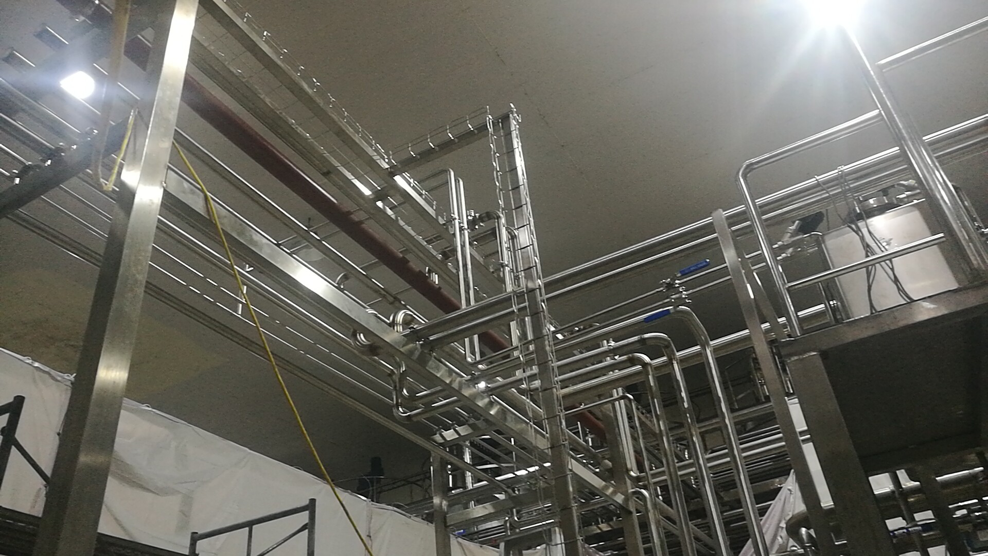 3、13T利樂UHT能源管路碰口完畢,焊接完成70%;網(wǎng)絡(luò)橋接布置完畢;